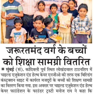 The Child Education and Health Care Foundation is a non-profit trust dedicated to uplifting underprivileged children and communities through integrated initiatives in education and healthcare. Established and managed by MANOJ ROY, a passionate teacher and mentor with extensive experience in guiding young minds, the foundation operates with a mission to bridge gaps in access to quality education and medical services, particularly in remote and slum-dominated areas.