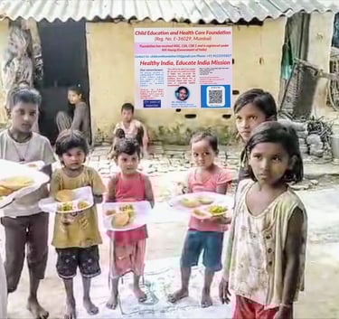 चाइल्ड एजुकेशन एंड हेल्थ केयर फाउंडेशन द्वारा बच्चों को भोजन वितरण